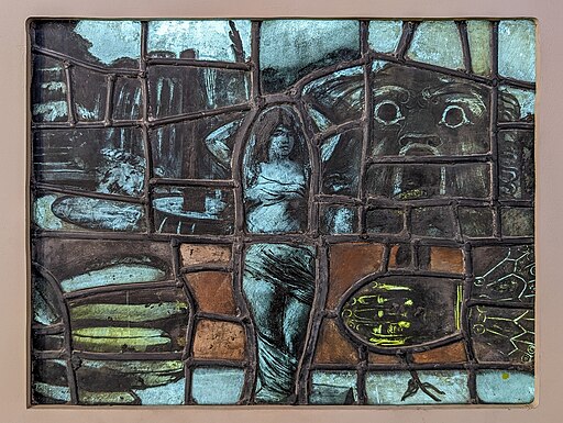 Photo credit: “Siren,” stained glass by Pauline Boty, c. 1958-62, via Wikimedia Commons